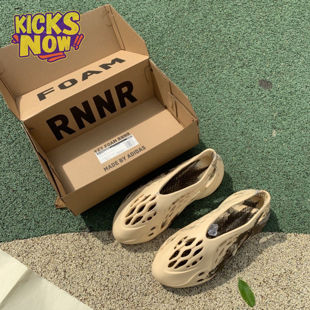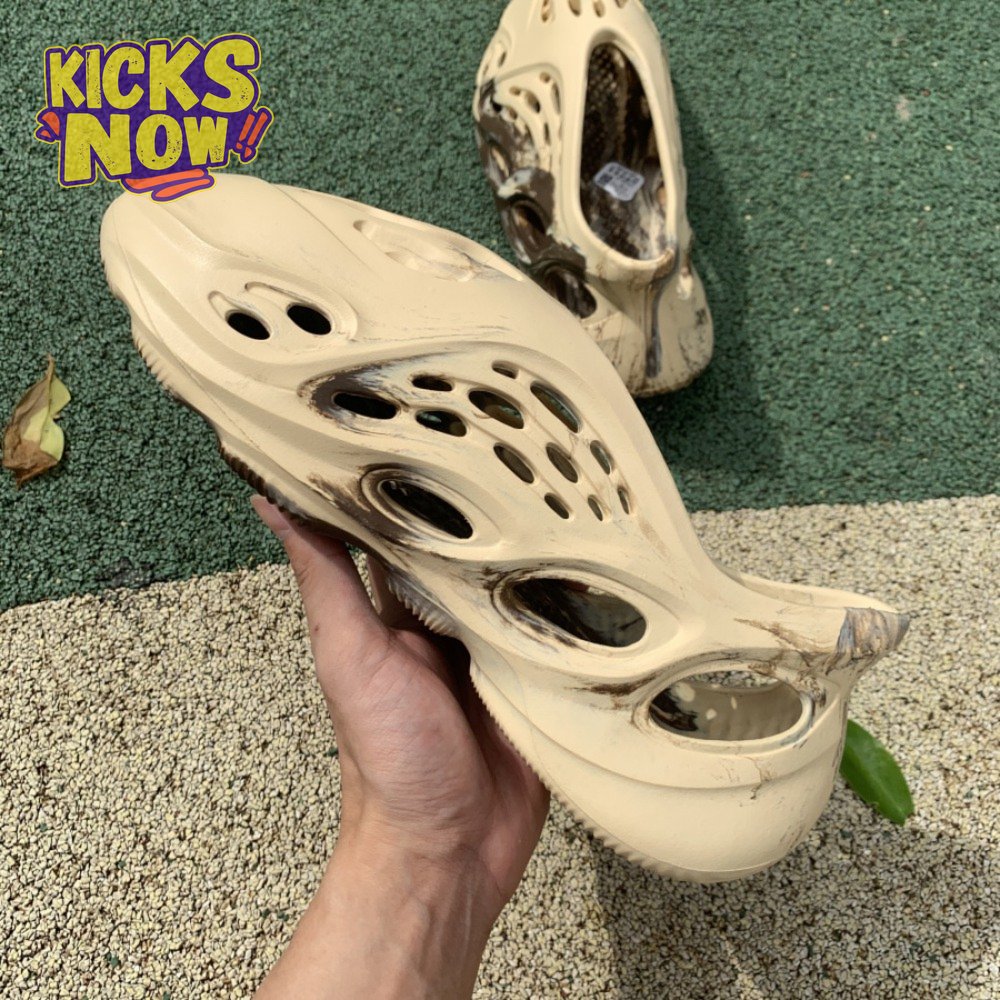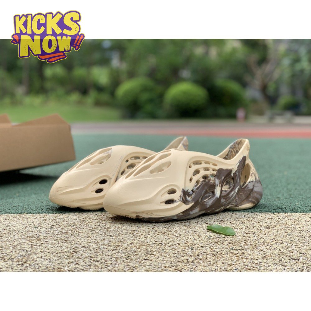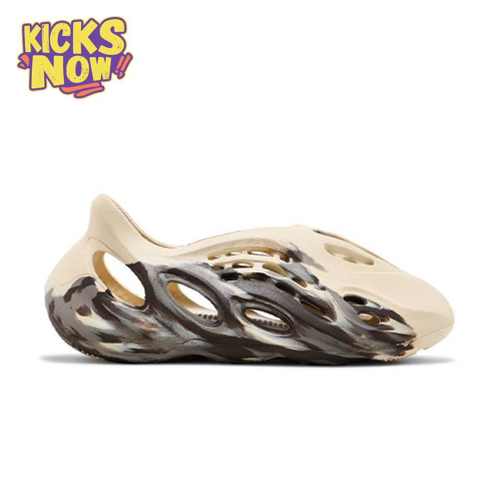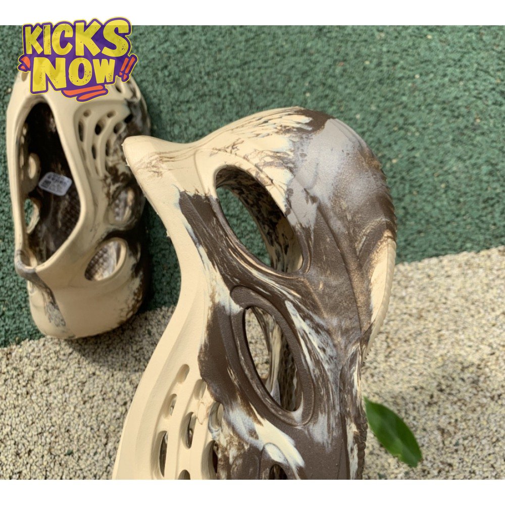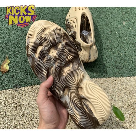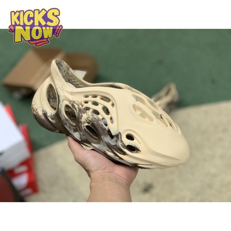 The adidas Yeezy Foam Runner "MX Cream Clay" enlivens Kanye West"s amphibious slip-on with a swirling blend of brown and grey. The neutral hues appear to have been painted on the surface of the cream-colored one-piece upper, crafted from a combination of lightweight EVA and hydroponically produced algae. Ventilation ports of varying sizes ensure breathable comfort, while the sculpted design keeps the foot locked in place.